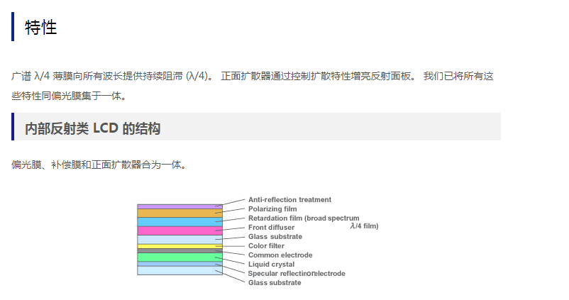 用于反射式 LCD 光學(xué)薄膜(正面擴(kuò)散器,寬頻帶 λ/4 薄膜)